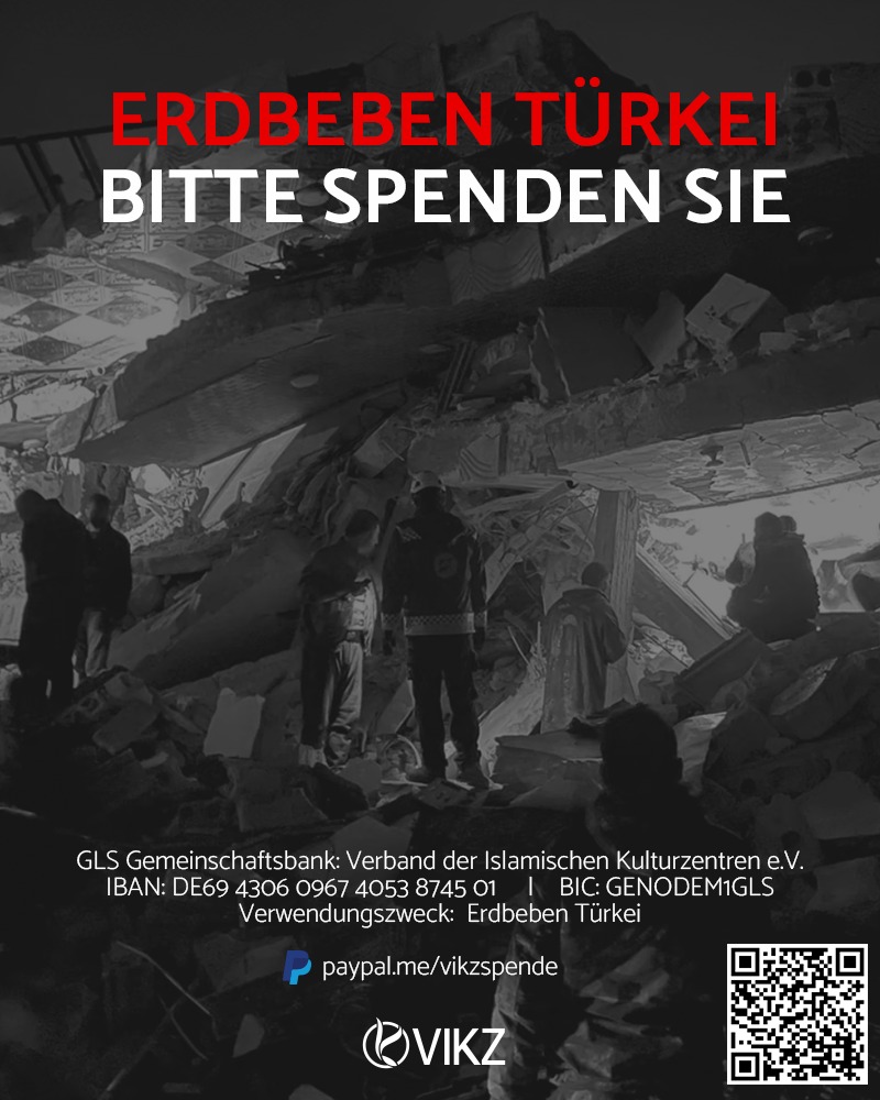 Der Landesverband der Islamischen Kulturzentren Rheinland-Pfalz e.V. ist tief erschüttert über die verheerenden Auswirkungen des Erdbebens im Südosten der Türkei und seinem angrenzenden Nachbarland Syrien. Die Zahl der Todesopfer und der Verletzten steigt von Stunde zur Stunde immer weiter. Der VIKZ wünscht allen Todesopfern Allahs Segen, den Hinterbliebenen sein tiefstes Mitgefühl und den Verletzten schnelle Genesung. Wir bangen mit den Verschütteten.