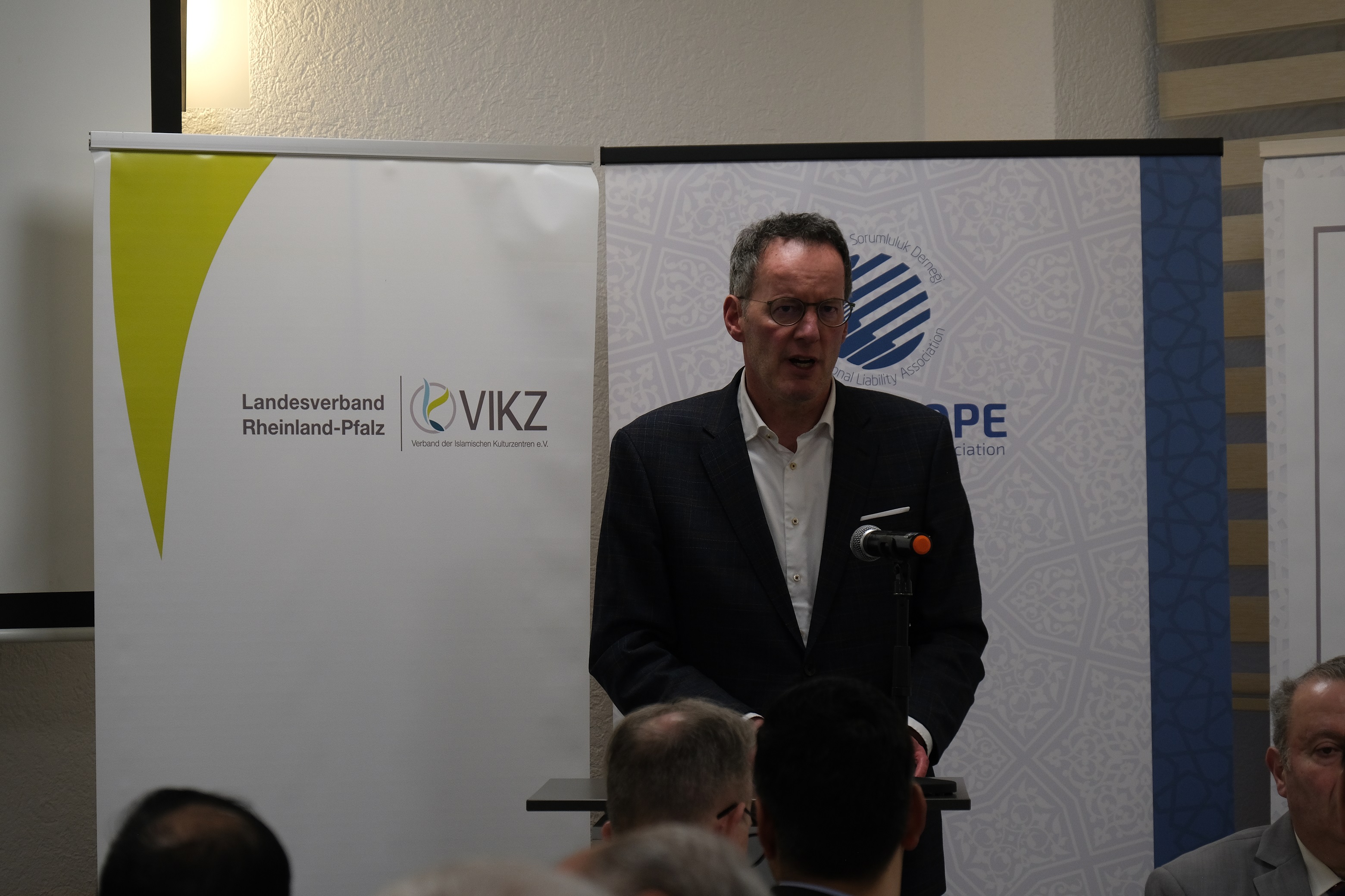 Der rheinland-pfälzische Innenminister Michael Ebling äußerte im Namen der Ministerpräsidentin Malu Dreyer und der Landesregierung die besten Wünsche zum Ramadan. Er unterstrich darüber hinaus die Bedeutung des friedlichen und respektvollen Zusammenlebens in einer pluralen Gesellschaft: „Die Vielfalt, die Religion der Muslime ist ein Stück Reichtum und kultureller Breite, die wir aus unserem Verständnis heraus als eine große Chance begreifen, die dieses Land reicher macht und die Möglichkeiten erweitert und vergrößert. Mit diesem Blickwinkel wollen wir auch den kulturellen Dialog weiterführen.“