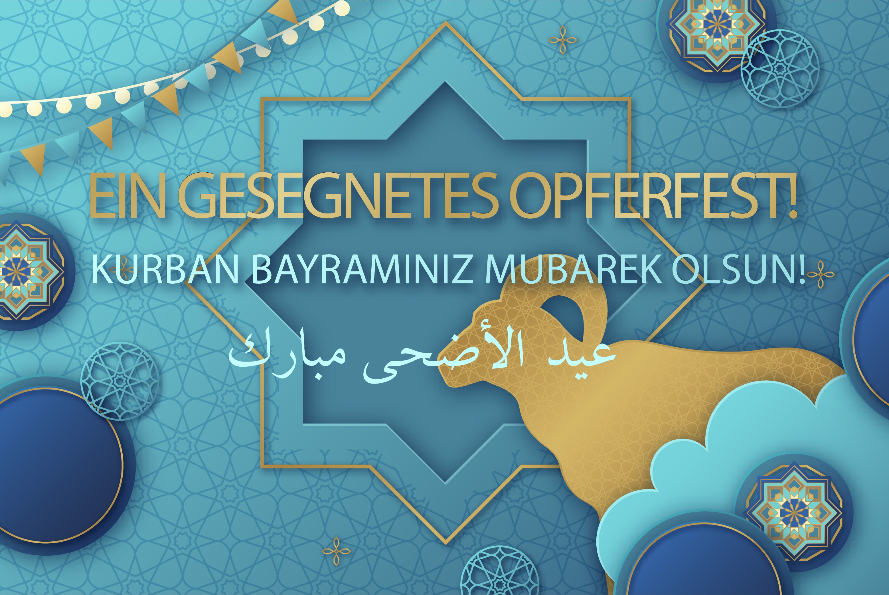 Der Landesverband der Islamischen Kulturzentren Rheinland-Pfalz wünscht allen Muslimen ein gesegnetes und friedvolles Opferfest. Das Opferfest ist für Muslime ein Fest der Liebe, des Friedens, der Versöhnung, der Solidarität, der Fürsorge, des Teilens und der Unterstützung von Armen und Bedürftigen.